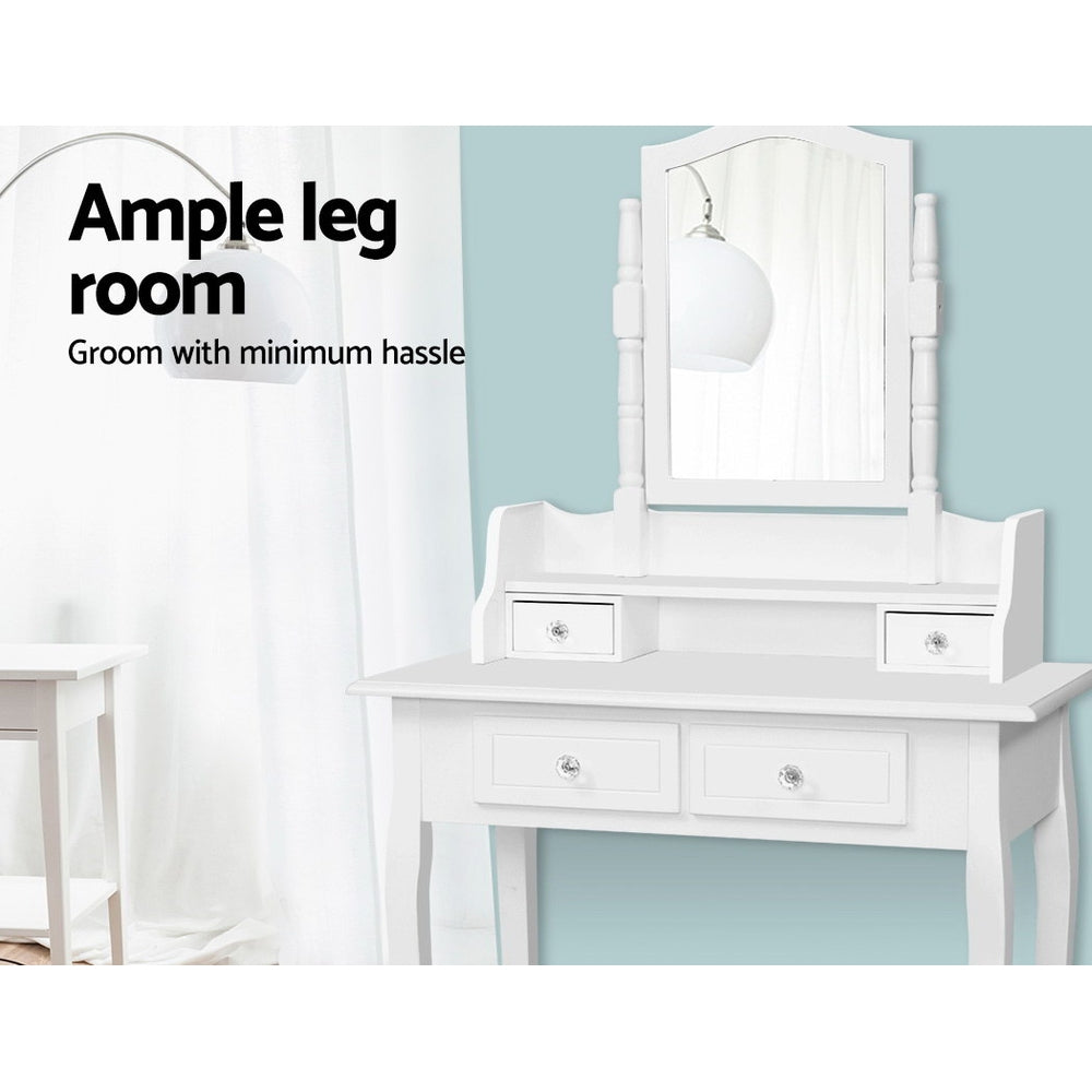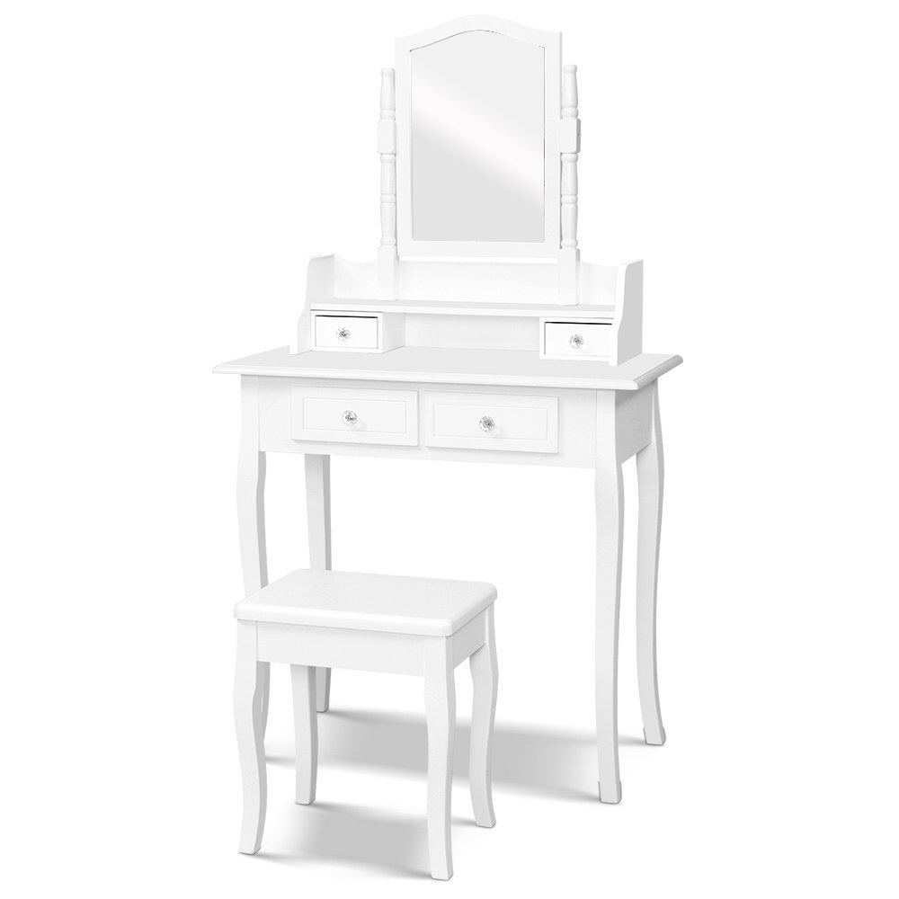 Add a touch of Provincial charm to your bedroom with our luxurious period style Dressing Table Set. Graceful and elegant, the set exudes finesse in every corner and aspect. Much like yourself as you prepare for the day in alluring beauty. Made with meticulous craftsmanship, the dressing table features elegantly curved cabriole legs, large mirror and four drawers that provides ample storage space for your jewellery pieces and makeup essentials. It also features a compensated table design that allows more leg room for seating comfort. Plus, the mirror rotates 360° so that you can admire your reflection from any angle. Together with the matching stool, the ensemble is immediately captivating to the senses.