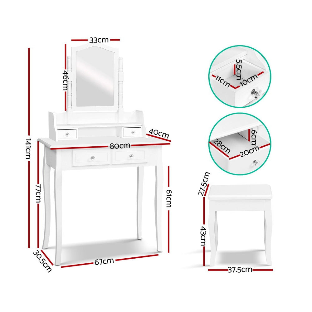 Dressing table overall dimensions: 80cm x 40cm x 141cm