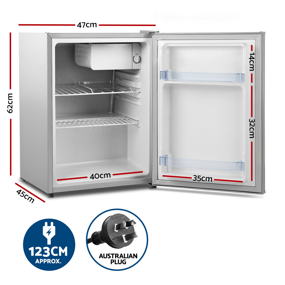 Suitable for your caravan, apartment, work kitchen or holiday house, this handy mini bar fridge is great for accommodating a variety of food and beverages with chill compartment and door compartment for storing drinks and sauces. Conveniently used as a second fridge or mobile refrigerator as well.