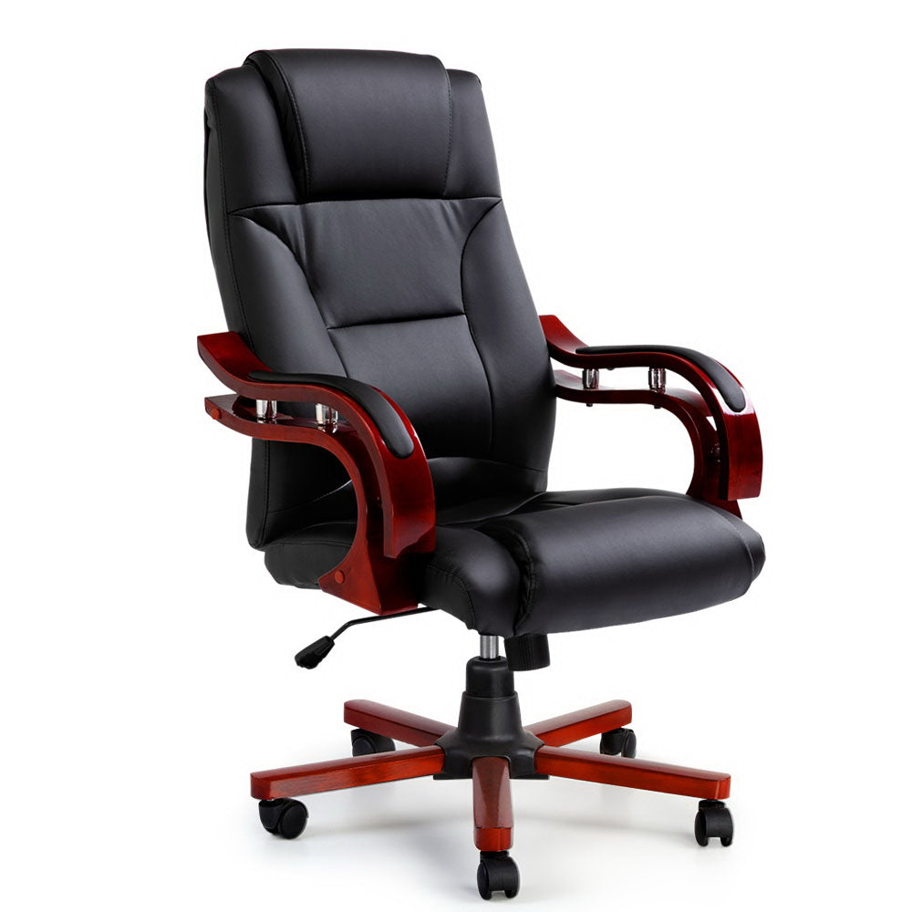 Executive Wooden Office Chair Wood Computer Chairs Leather Seat Sherman