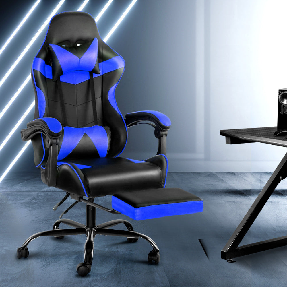Gaming Office Chairs Computer Seating Racing Recliner Footrest Black Blue