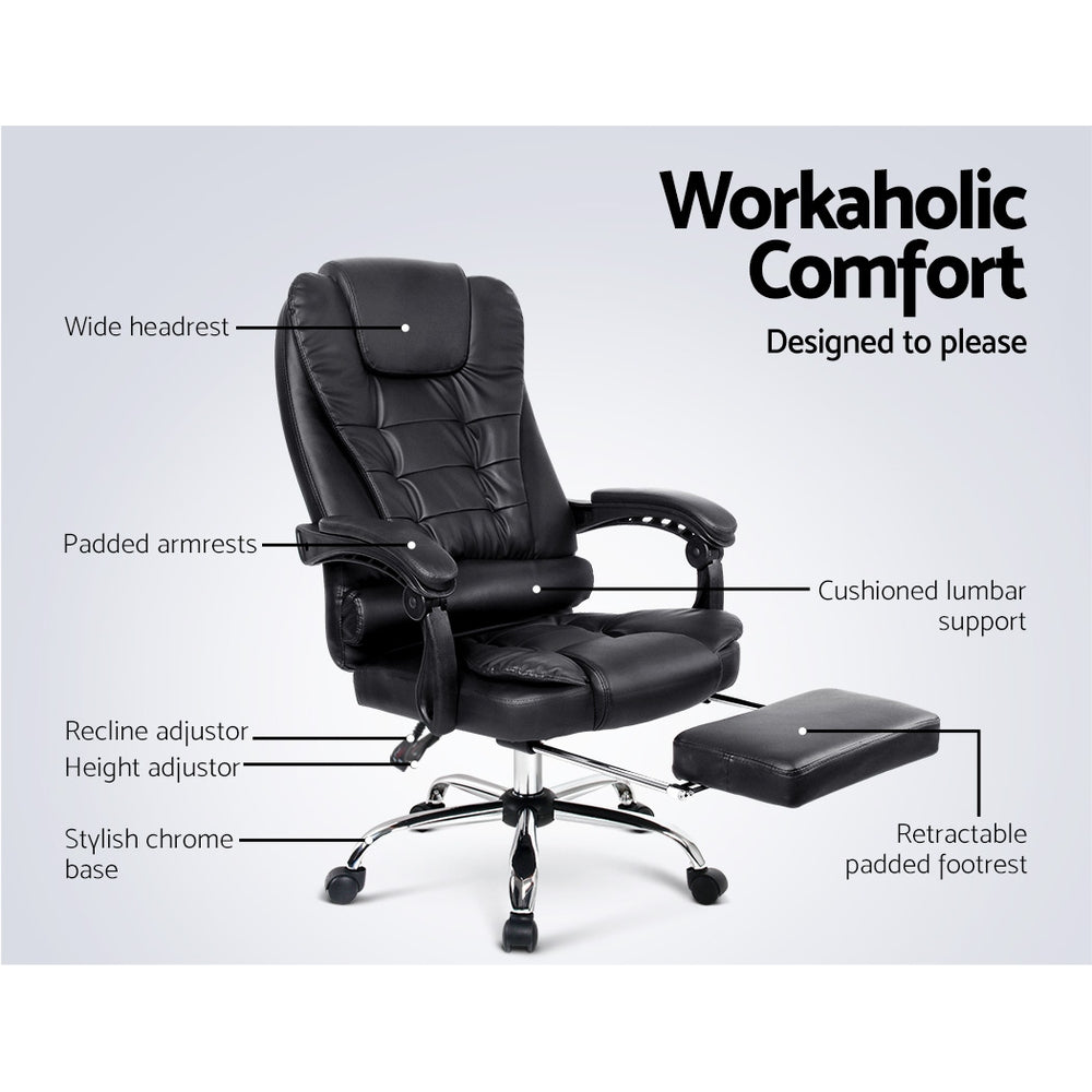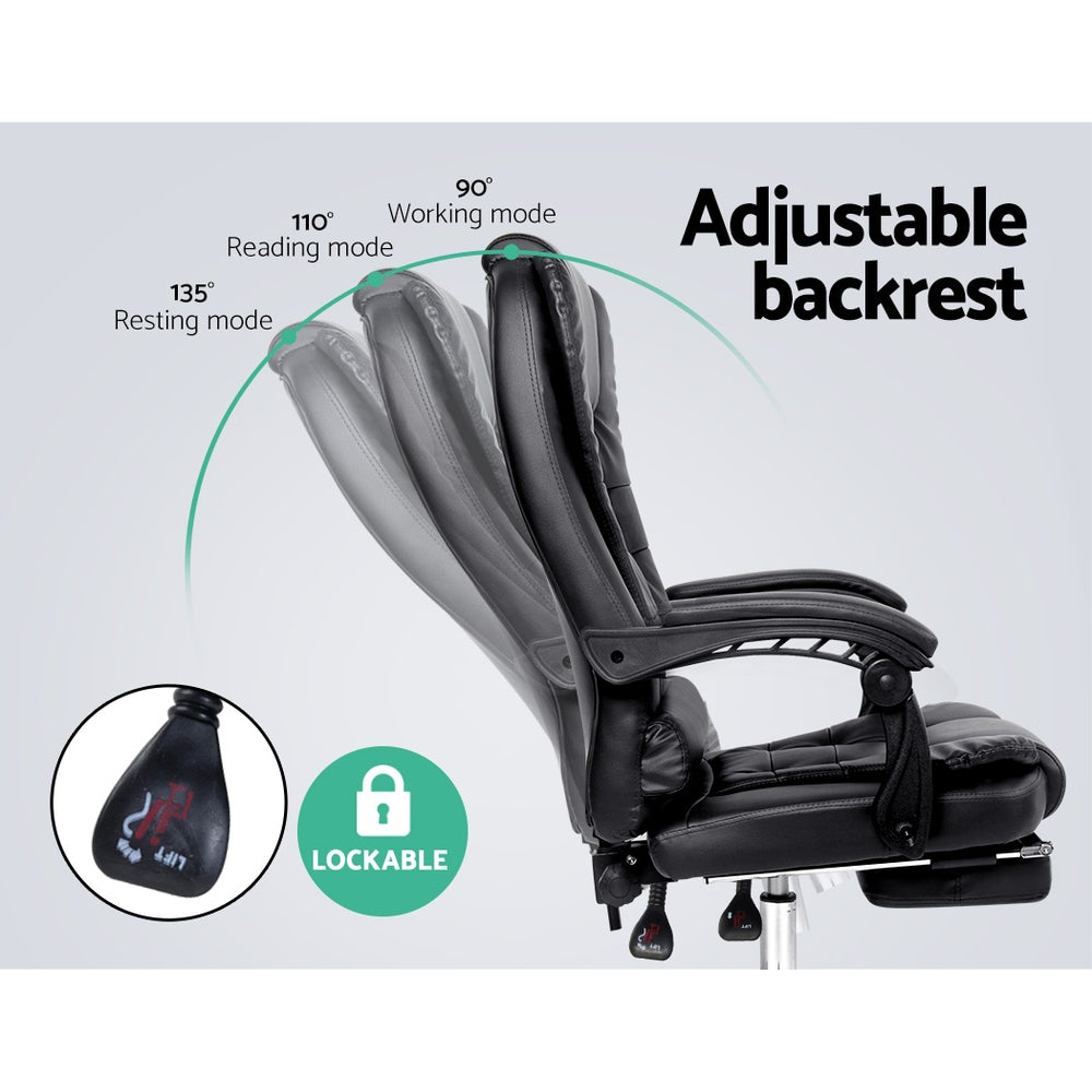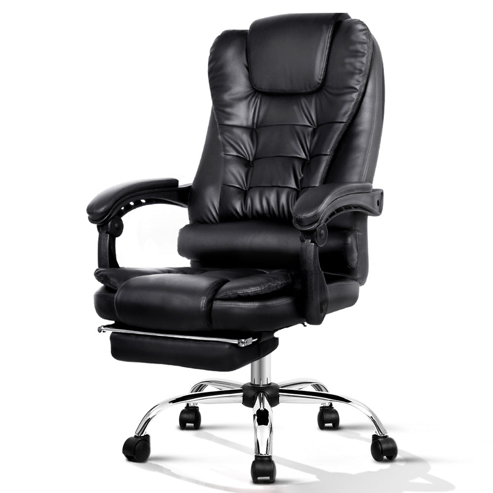 Other premium embellishments with our executive office chair include generous padded seat, well-cushioned lumbar support, adjustable lock-back support, contoured S-shape back design, padded armrest and retractable footrest, 360°swivel seat and up to 135°back recline adjustment to name a few.