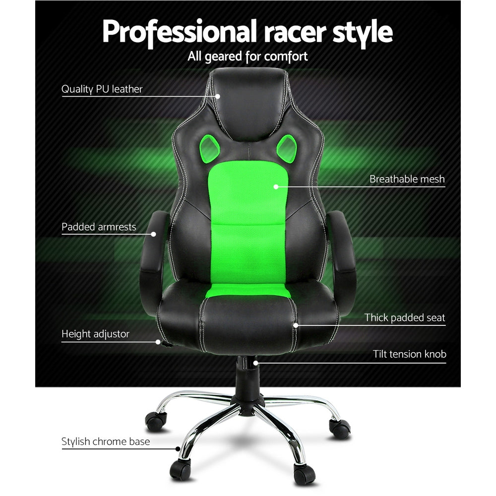 Made with shiny leather seat, padded armrests and built-in lumbar support, it maximises comfort in every way. Cool looking chrome base with castor wheels, ensuring you to cruise through everywhere easily without any jerking.